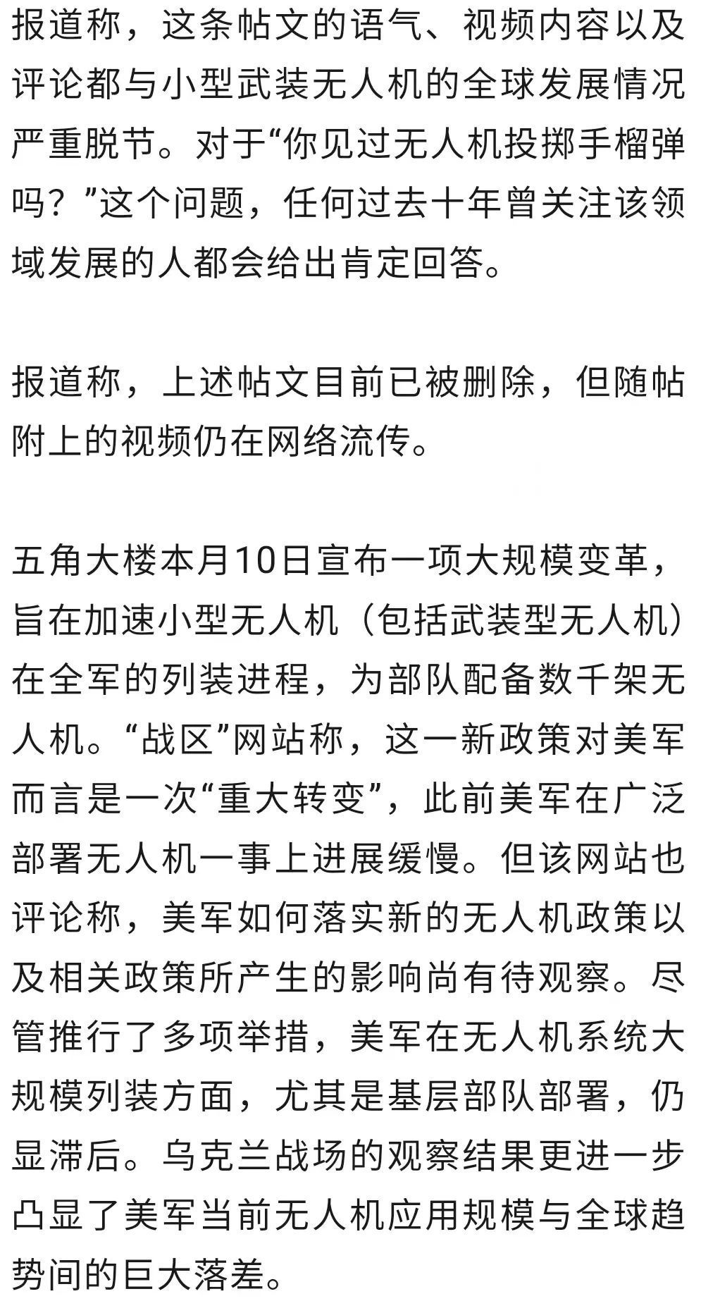 美军高调发帖展示无人机投掷手榴弹视频,美媒“泼冷水”:反而凸显美军落后于全球趋势据美国“战区”网站21日报道,美国陆军近日在社交平台X上传了一段无人机投掷手榴弹的视频。报道称配资首富股票配资网,该视频本意是“炫耀”美国陆军在部署小型武装无人机方面所做的工作配资首富股票配资网,却凸显出美国陆军乃至其他军种在相关技术上落后于全球趋势。“你见过无人机投掷手榴弹吗?”美国陆军官方X账号21日早些时候发布帖文称,“来看陆军第七训练司令部、乌克兰联合多国训练小组和美国第173空降旅的士兵在德国格拉芬沃尔军事训练基地首次使用无人机系统投掷实弹手榴弹。”